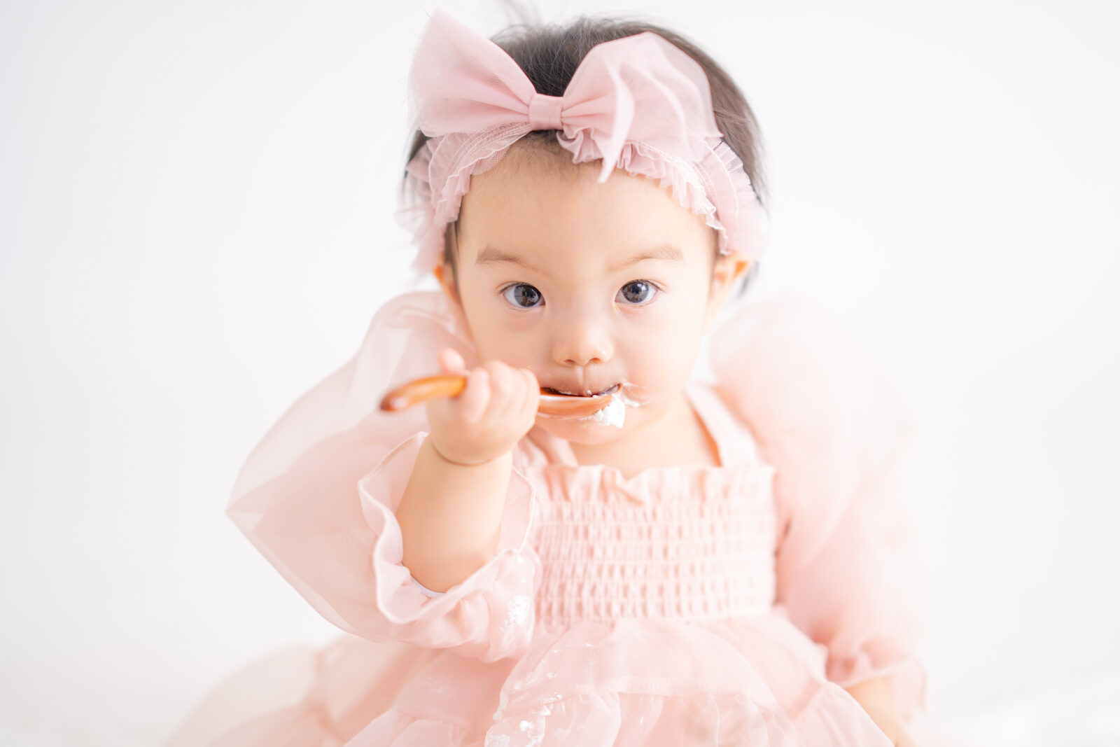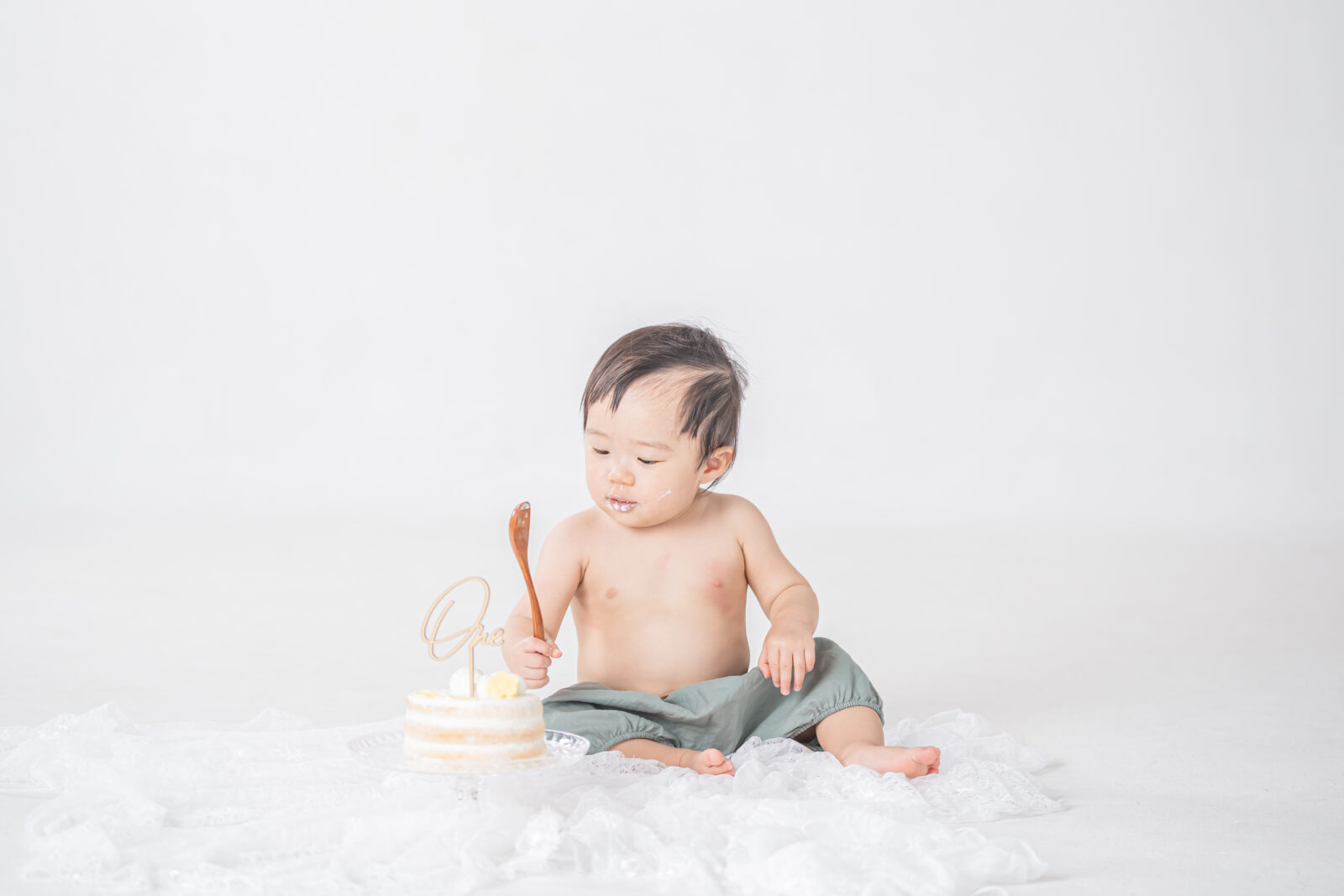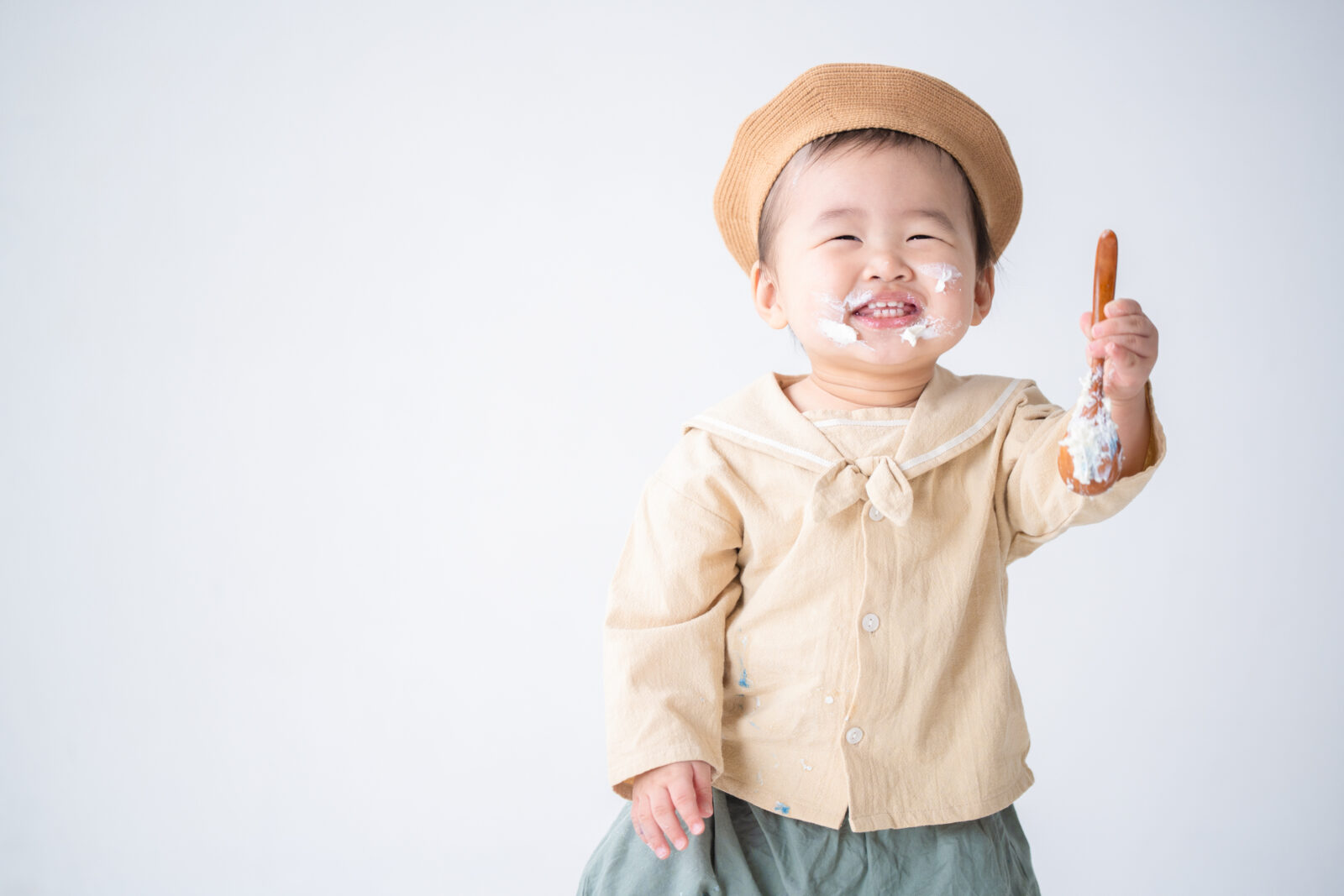 ※泣いてしまった場合など、親御様に抱っこしていただくことがございます。撮影に参加されない場合でも、汚れても良い服装でご来館いただくことをお勧めしております。